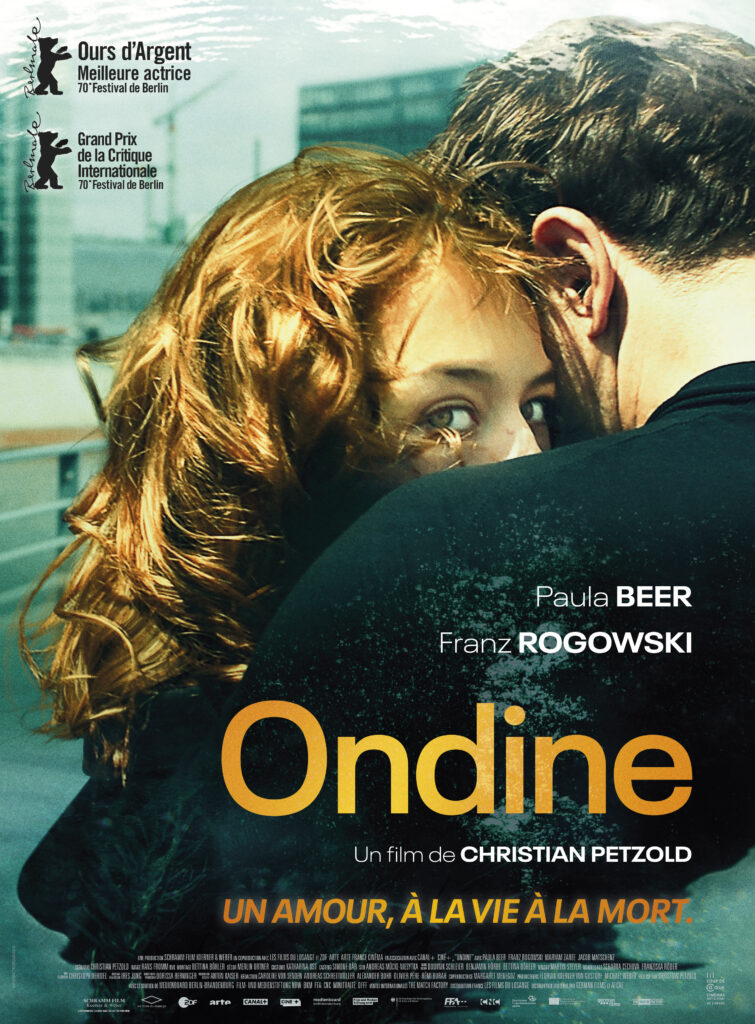 Christian Petzold, chef de file de la « Nouvelle Vague » allemande (Ecole de Berlin) réalise l’adaptation d’un récit de la mythologie germanique (plus précisément alsacienne) dont l’écrivain romantique allemand Friedrich de la Motte-Fouqué a tiré une célèbre nouvelle en 1811 : Ondine est une nymphe, une naïade, qui fréquente les rivières et les fontaines. Outre son envoutante beauté, elle est d’une constance exceptionnelle. Enlevée par un jeune seigneur dont elle finit par tomber amoureuse, elle refuse de le quitter pour aller voir sa mère malade. La fée, sa marraine, la punit et la condamne à aimer toujours son amour… quoiqu’il fasse. Le seigneur fatigué d’elle lui annonce qu’il la quitte. Mal lui en prend…